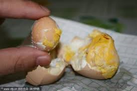 Later wordt het opnieuw bedekt met een aantal lagen eiwit en schaal, als je dit ei openmaakt zie j egeen eigeel maar een witte dooier, bedekt met vreemde vliezen.