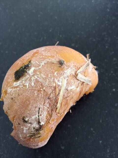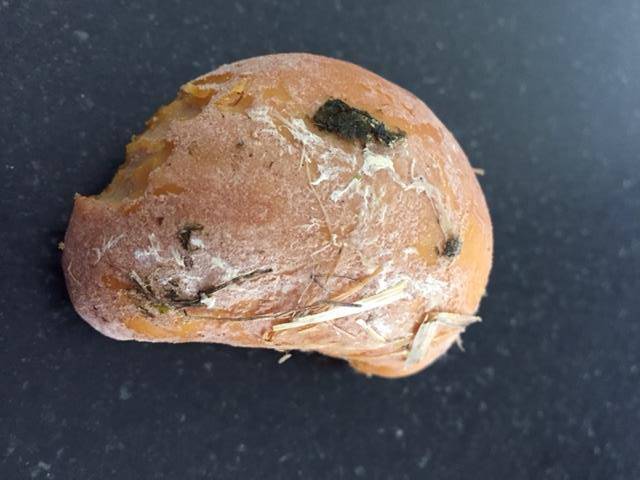 De binnenkant, je ziet een duidelijke opbouw in lagen met in het midden een soort pit.