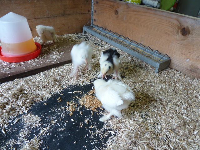 de kuikens van 23 April 2015, ze worden al groot, nu al weer 4,5 week oud.