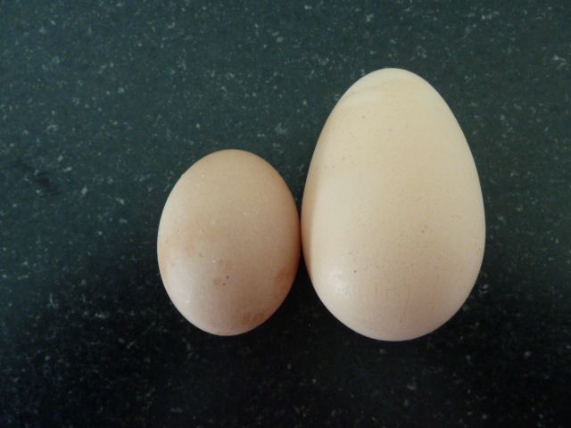 Zo nu en dan kom je eieren tegen die verschillen in grootte, soms kom je eieren tegen die wel erg veel in grootte verschillen zoals vandaag.