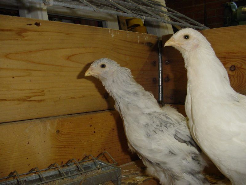 Omdat ik de kleur vuilwit zo mooi vind heb ik in 2009 een aantal vuilwitte kuikens gekocht, 2 hennen en een haan.