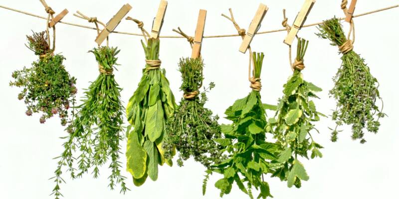 basilicum, berkenblad, citroenmelisse, knoflook, kaneel, kliswortel, mierikswortel, oregano, rozemarijn.